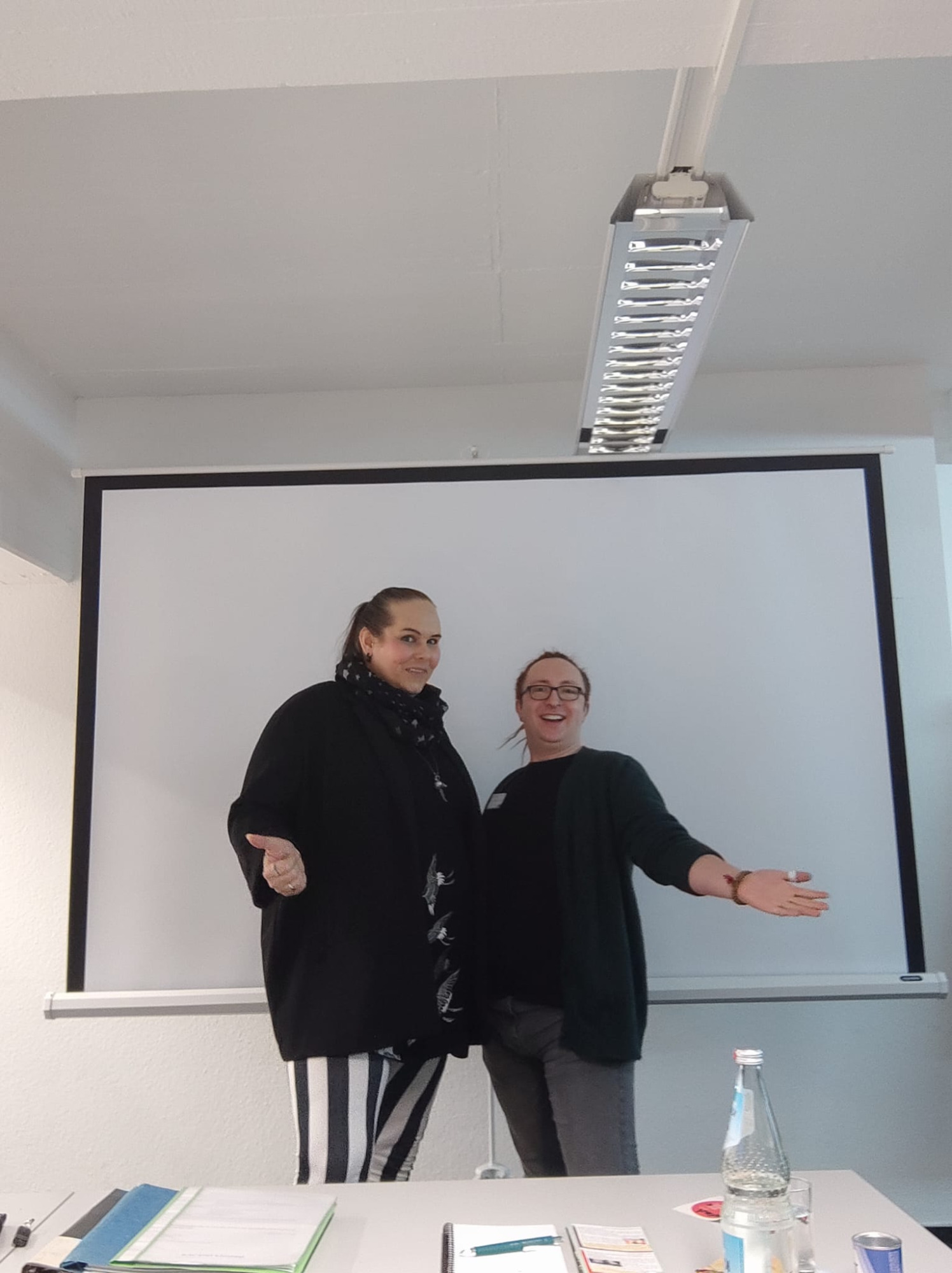 Vortrag zur Chanchengleichheit queerer Menschen am Arbeitsmarkt. (v.li. Isabelle Ongena & Maximilian Kühne)